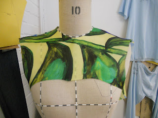 This look consists of using all 4 of the circles blocks had designed,Circle 1 - 30cm, Circle 2 - 48cm, Circle 3 - 70cm and 110.5cm in circumference. These digitally printed circles are from 4 different prints , each print being 2metres in length and 135cm width having the print in extremely large scale. This entire dress of applied digital print circles has 10metres of print featured on this dress.